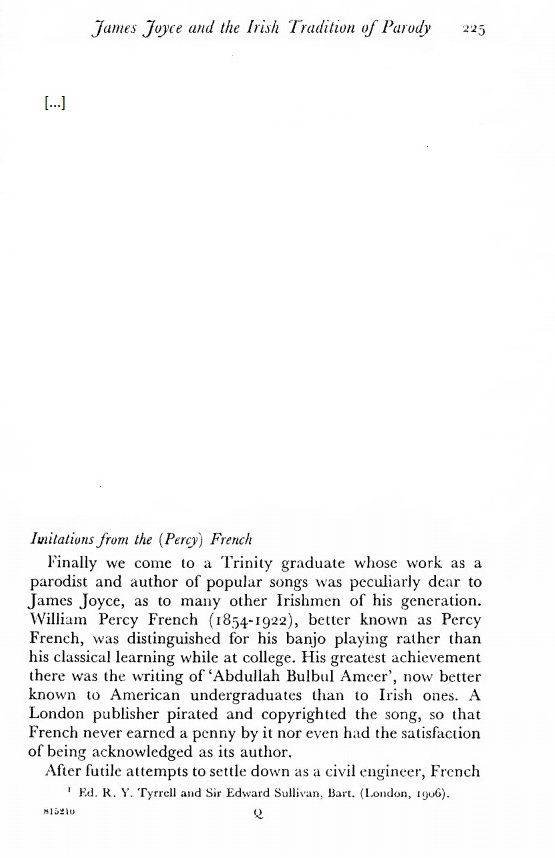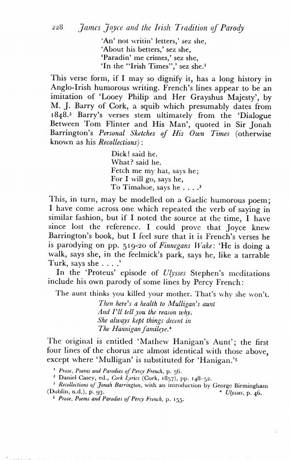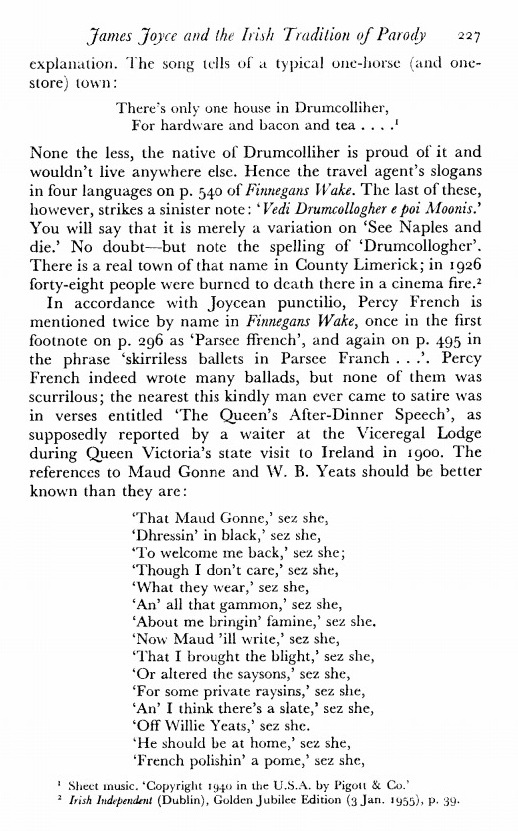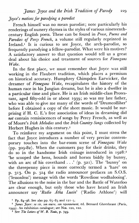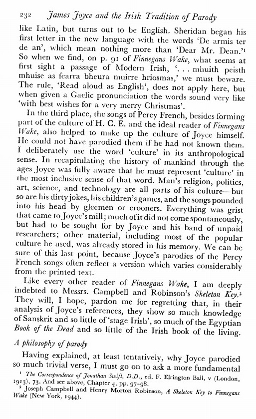 Vivian Mercier, Joyce and the Irish Tradition of Parody