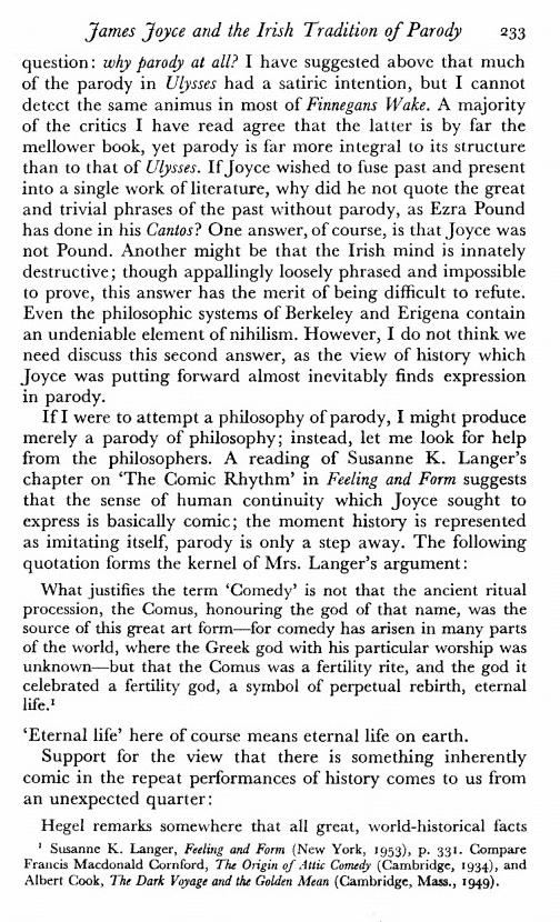 Vivian Mercier, Joyce and the Irish Tradition of Parody